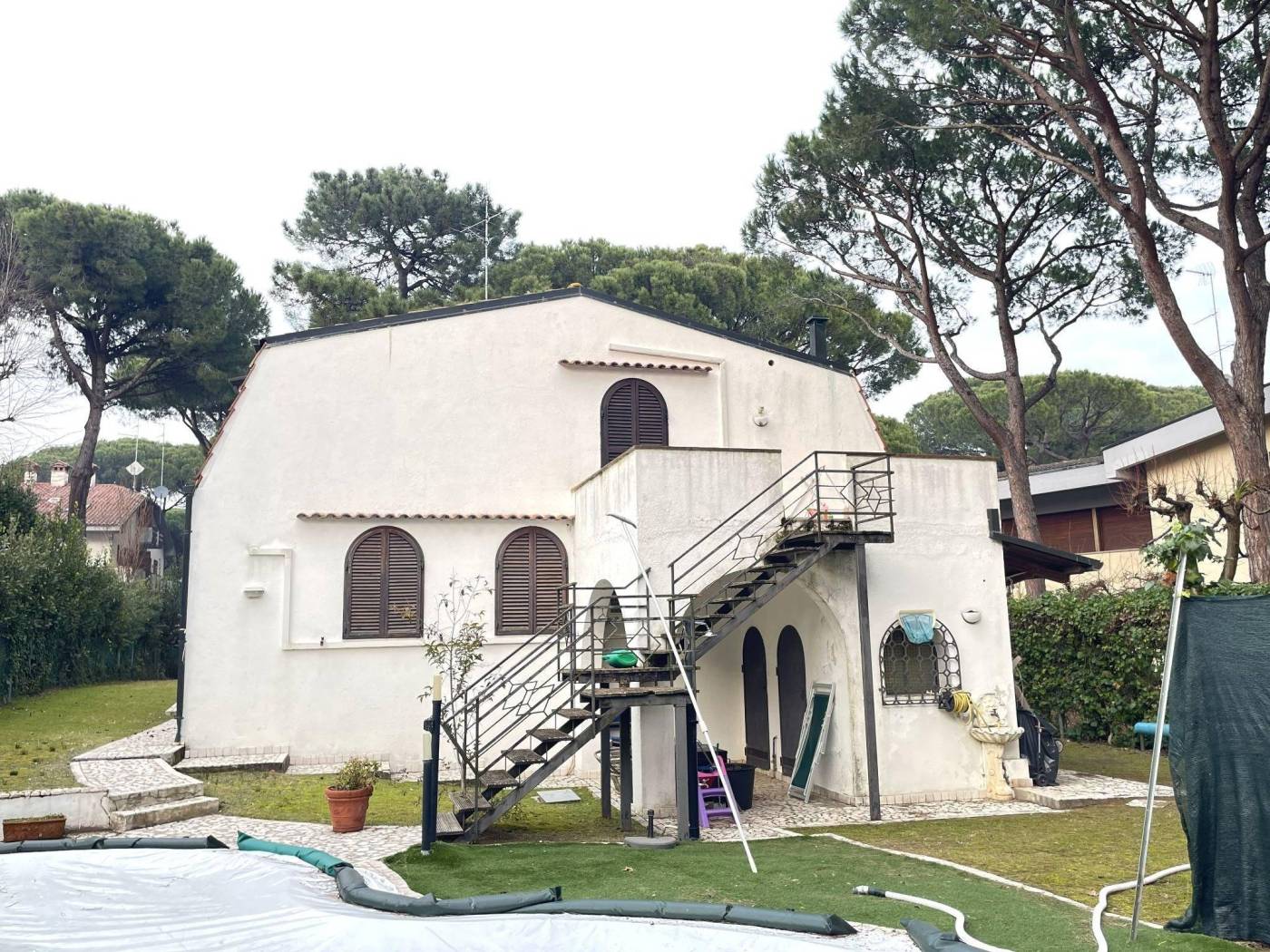 MARINA ROMEA (RA), vicinanze valle, in una cornice naturale esclusiva, vendesi splendida villa con ampio giardino di circa 650 mq. e piscina riscaldata ideale per momenti di relax e convivialità. La villa si compone di due unità una al piano terra e l'altra al piano primo con ingresso autonomo sia dall'esterno sia dall'interno dell'abitazione e precisamente composta da: al piano terra ampio portico, elegante soggiorno pranzo con camino e cucina a vista, disimpegno con armadi a muro, tre/quattro camere da letto e doppi servizi, centrale termica e cantina, oltre a raffinato camino esterno adiacente al portico; al piano primo soggiorno con cucina a vista, ampio terrazzo, disimpegno, due camere da letto, due bagni. Eu.. 690.000,00
